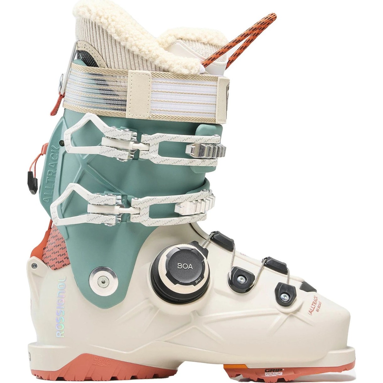 Женские горнолыжные ботинки Rossignol Alltrack 80 BOA GW W бежево-бирюзового цвета разработаны для лыжниц, которые ценят точную посадку и передовые технологии, обеспечивающие динамичное катание в различных условиях. Эффективность и комфорт сочетаются с продуманной системой регулировки, отвечающей потребностям спортсменок среднего уровня на горных трассах.