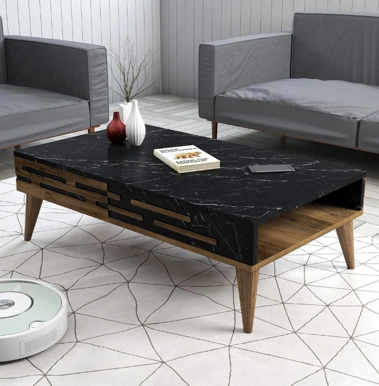 Журнальный столик Trendy Valensiya Walnut/Black Marble 105x34.6x60cm GTR000603