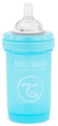 Бутылочка Twistshake станет отличным дополнением к грудному вскармливанию. Каждая бутылочка включает практичный контейнер для молочной смеси и сетку для её перемешивания. Уникальная система TwistFlow активно предотвращает появление колик и обеспечивает равномерный поток пищи. Бутылочка имеет широкий горлышко, что облегчает её чистку. Также она обладает удобным дизайном, который легко держать в руке и сохраняет тепло.