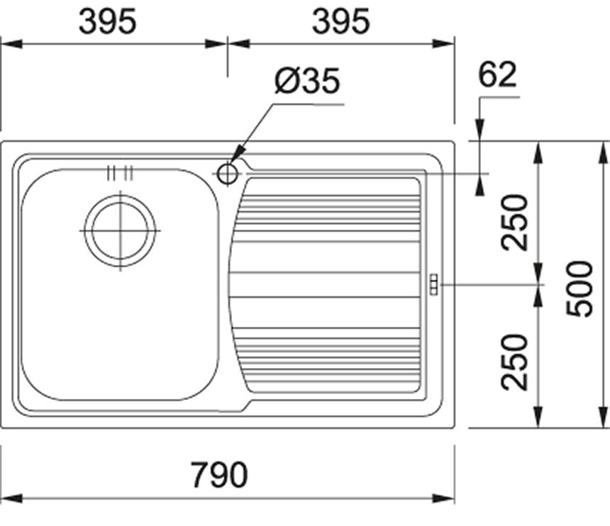Размер мойки790х500 мм