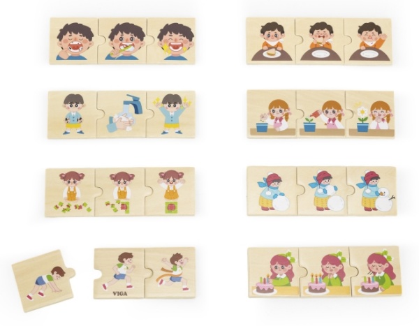 Деревянный пазл «Повседневные действия» – это уникальная развивающая игрушка от известного бренда VIGA, созданная специально для самых маленьких. Она помогает ребенку учиться через игру, предлагая 24 ярких элемента с изображением различных действий из повседневной жизни детей.