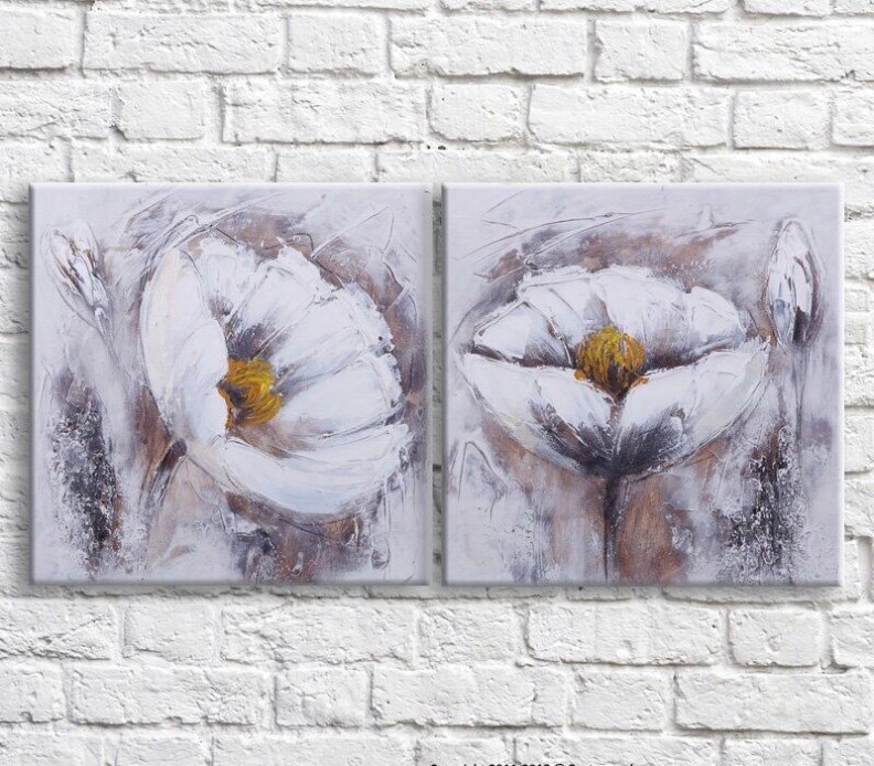 Картина Magic Color White poppies in watercolor on a White background, diptych (3467675)