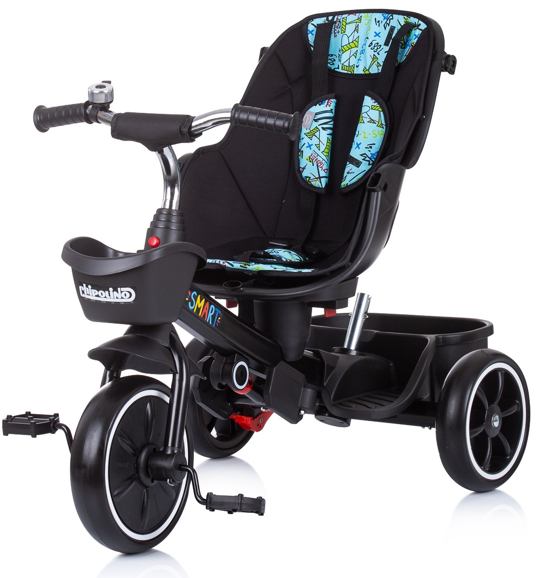 Корзина для хранения спереди и одна побольше сзади трехколесного велосипеда.