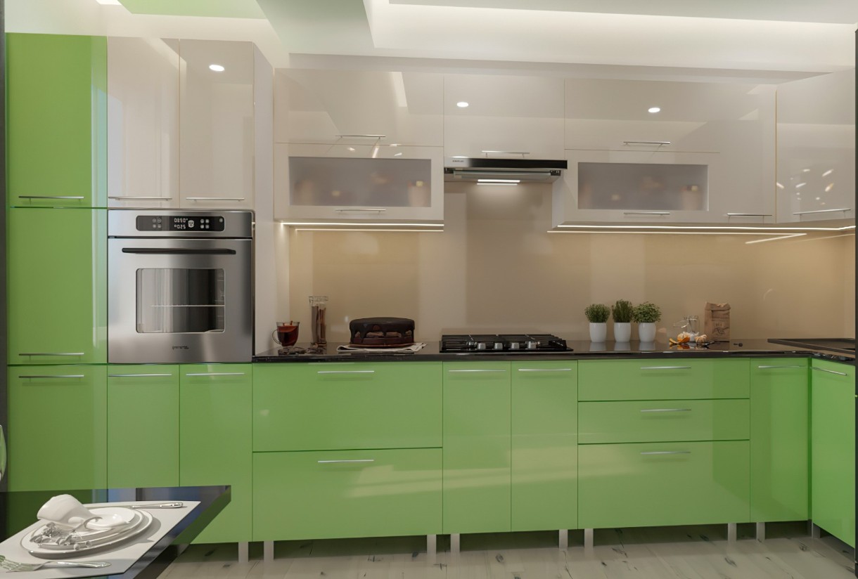 Кухонный гарнитур Bafimob Corner (High Gloss) 4.1x0.9m Eco +ball closer Green/Beige