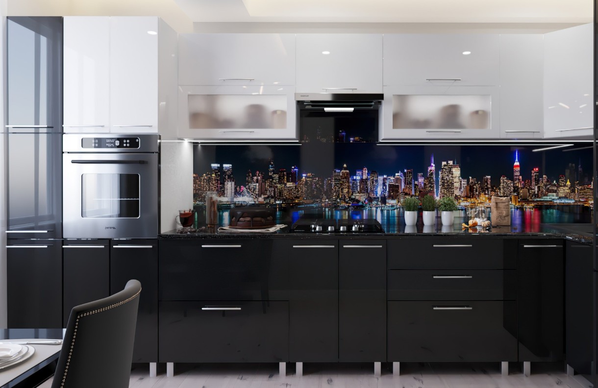 Кухонный гарнитур Bafimob Corner (High Gloss) 4.1x0.9m Eco +ball closer White/Black