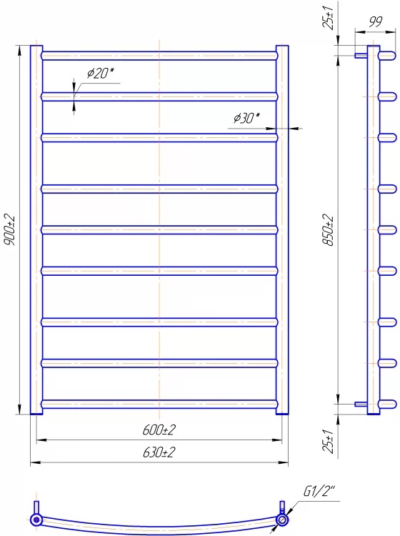 Полотенцесушитель Mario Classic 900х630/600