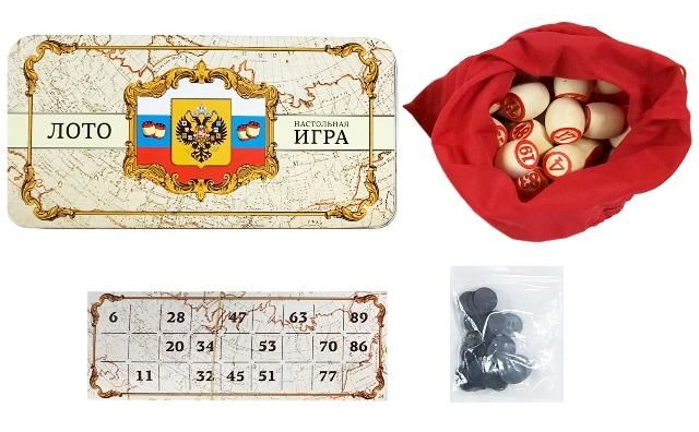 90 бочонков в мешочке, 24 карточки, фишки