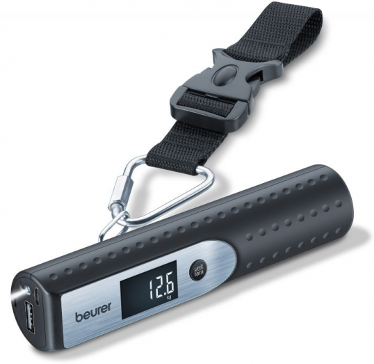 Багажные весы Beurer LS50 (для багажа) USB пригодятся вам в дороге. Компактная модель не займет много места в сумке. С ее помощью можно не только точно измерить вес вашего чемодана, но и подзарядить свой смартфон. Также устройство обладает фонариком, которым можно воспользоваться в темное время суток. На удобном для чтения жидкокристаллическом дисплее отображается вся необходимая информация. Если произойдет перегрузка, система сразу оповестит об этом. Максимальный вес составляет 50 кг. Модель имеет функцию автоматического отключения. Современное устройство станет отличным подарком для заядлых путешественников.
