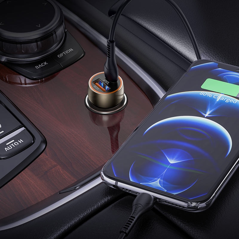 Автомобильная зарядка Hoco Z46A Blue Whale + Type-C to Lightning Metal Gray