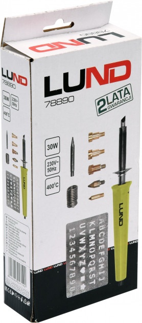 LUND 78890 — устройство, которое сочетает в себе функции паяльника и пирографа. Позволяет выполнять мягкую пайку — ремонт электронных компонентов, подготовку электроустановок, а также декорирование изделий из дерева и кожи, рисунков, надписей.