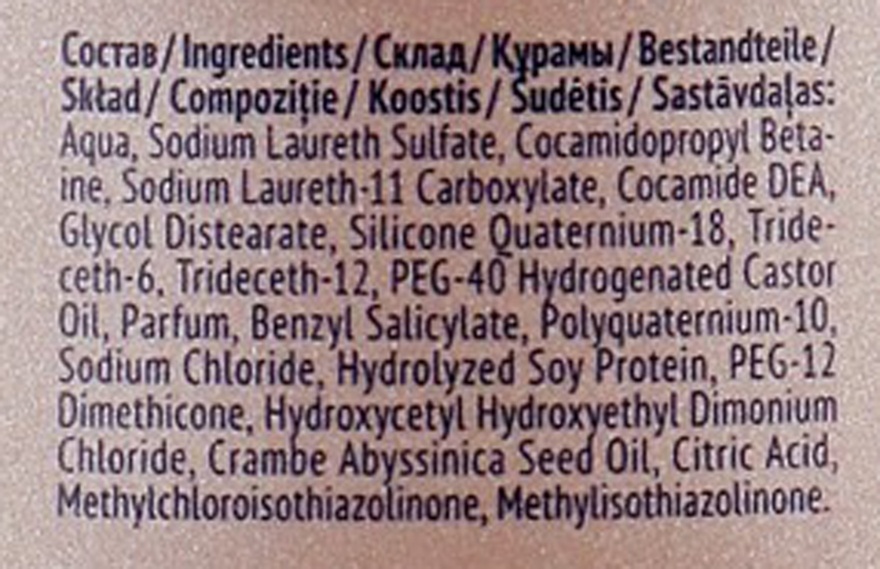 Шампунь для волос «Роскошь вьющихся волос» известного бренда Estel Professional — это гармоничное сочетание тщательного очищения и деликатного ухода за милыми кудряшками. Поскольку такие пряди от природы обладают пористой структурой и к тому же отличаются капризным характером, уже для первого этапа необходимо выбирать специальные средства. Благодаря сбалансированной формуле средство обеспечивает приятную чистоту и свежесть, а также восстанавливает структуру завитков, делая их мягкими, упругими и эластичными. Такой воздействие возможно благодаря маслу крамбе и пептидам сои, входящим в состав.