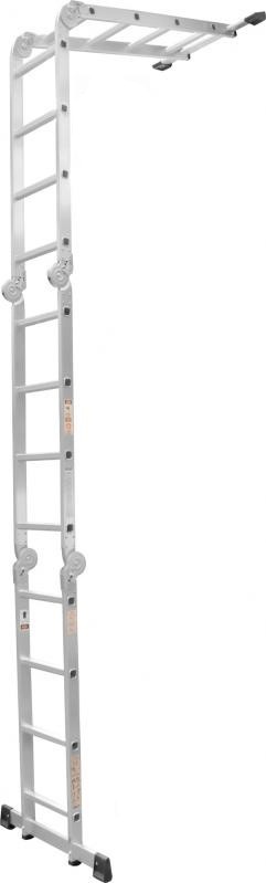 Алюминиевая универсальная лестница Elkop M 4×4 выполнена из высокопрочного алюминиевого сплава, не скользит на полу, состоит из четырех частей, удобна при транспортировке и хранении.