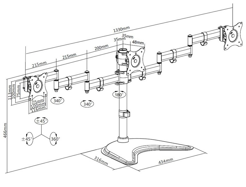 Кронштейн для монитора Multibrackets M Deskstand Basic Triple