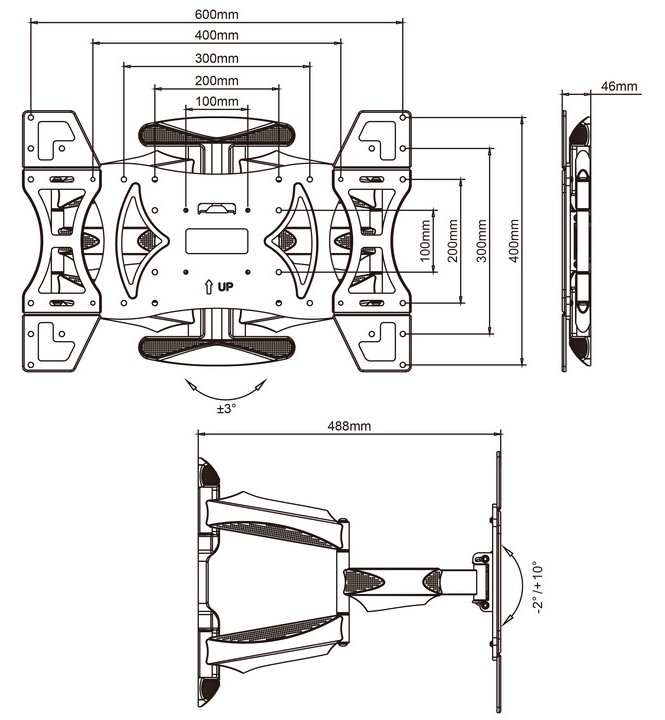 Стандарт VESA100x100, 200x100, 200x200, 300x300, 300x200, 400x200, 400x300, 400x400 мм