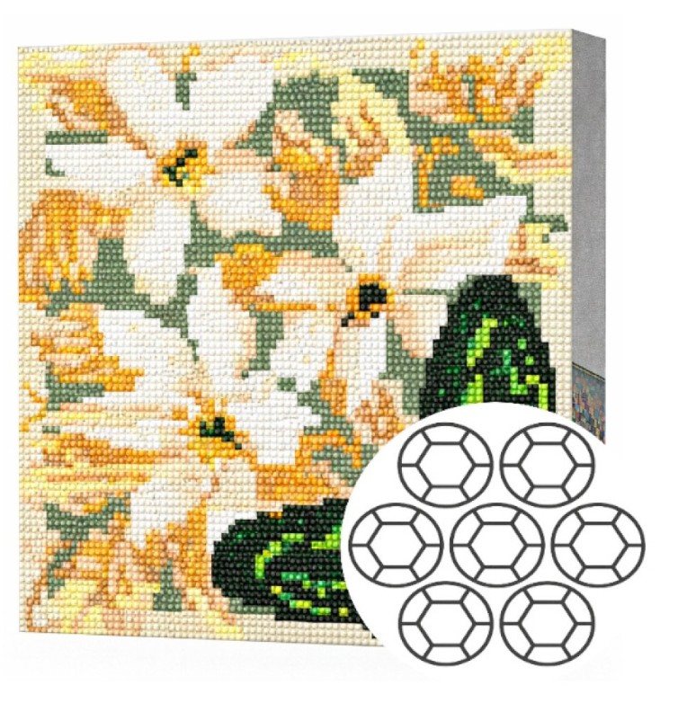 Алмазная мозаика Art Gallery Premium White Flowers And Green Butterfly (BJ851)