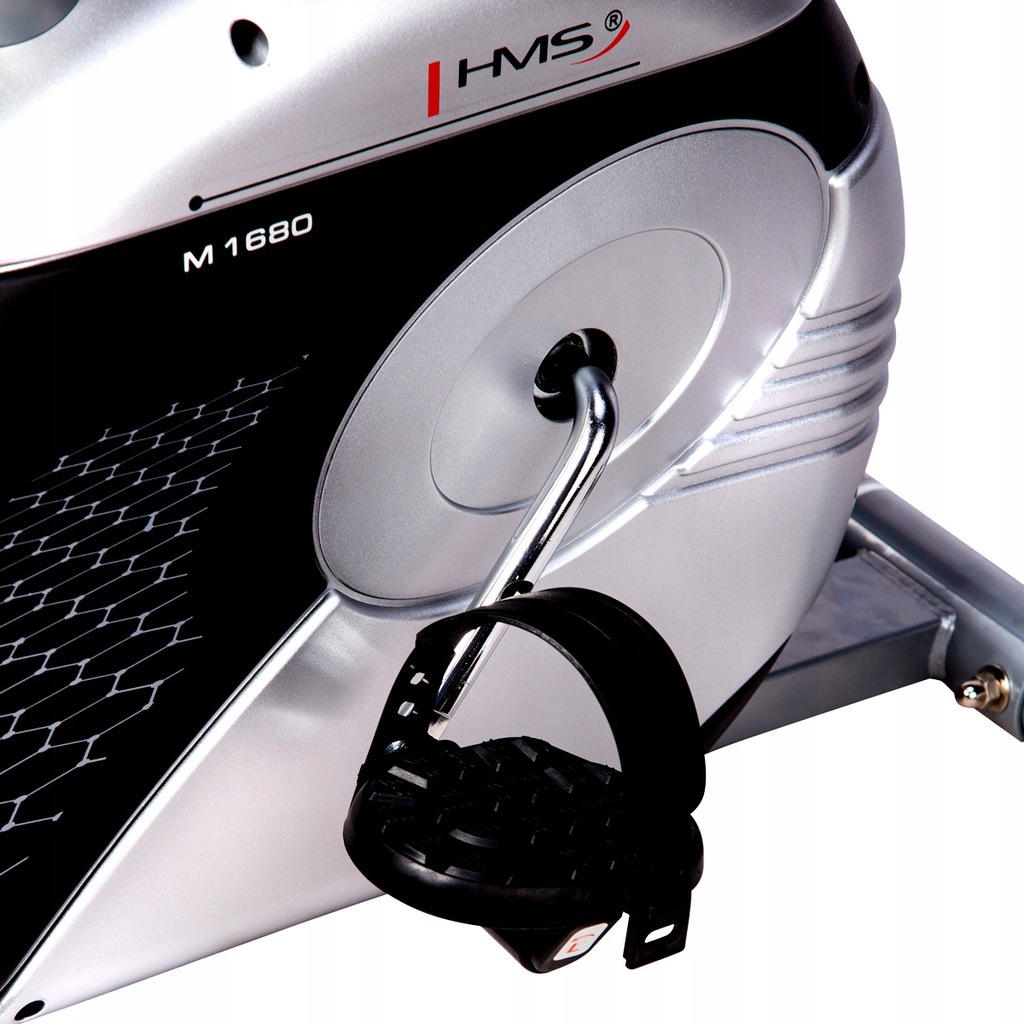 Магнитный велосипед M1680 HMS — популярное фитнес-оборудование, которое идеально подходит для тренировок дома. Благодаря системе магнитного сопротивления упражнения проходят тихо и не беспокоят окружающих. Езда на велотренажере — это не что иное, как кардиотренировка, то есть тренировка на выносливость, направленная на повышение эффективности работы сердца. Он имеет 8-ступенчатую регулировку сопротивления, поэтому мы можем адаптировать тренировку к каждому уровню развития. Функциональный и современный компьютер подсчитывает и отображает все наиболее важные параметры тренировки. Регулируемое седло или удобные педали с регулируемыми ремнями — другие преимущества этой чрезвычайно удачной конструкции. Кроме того, в этой модели есть держатель для мобильного устройства, что сделает тренировку более приятной, например, с просмотром фильма на планшете.
