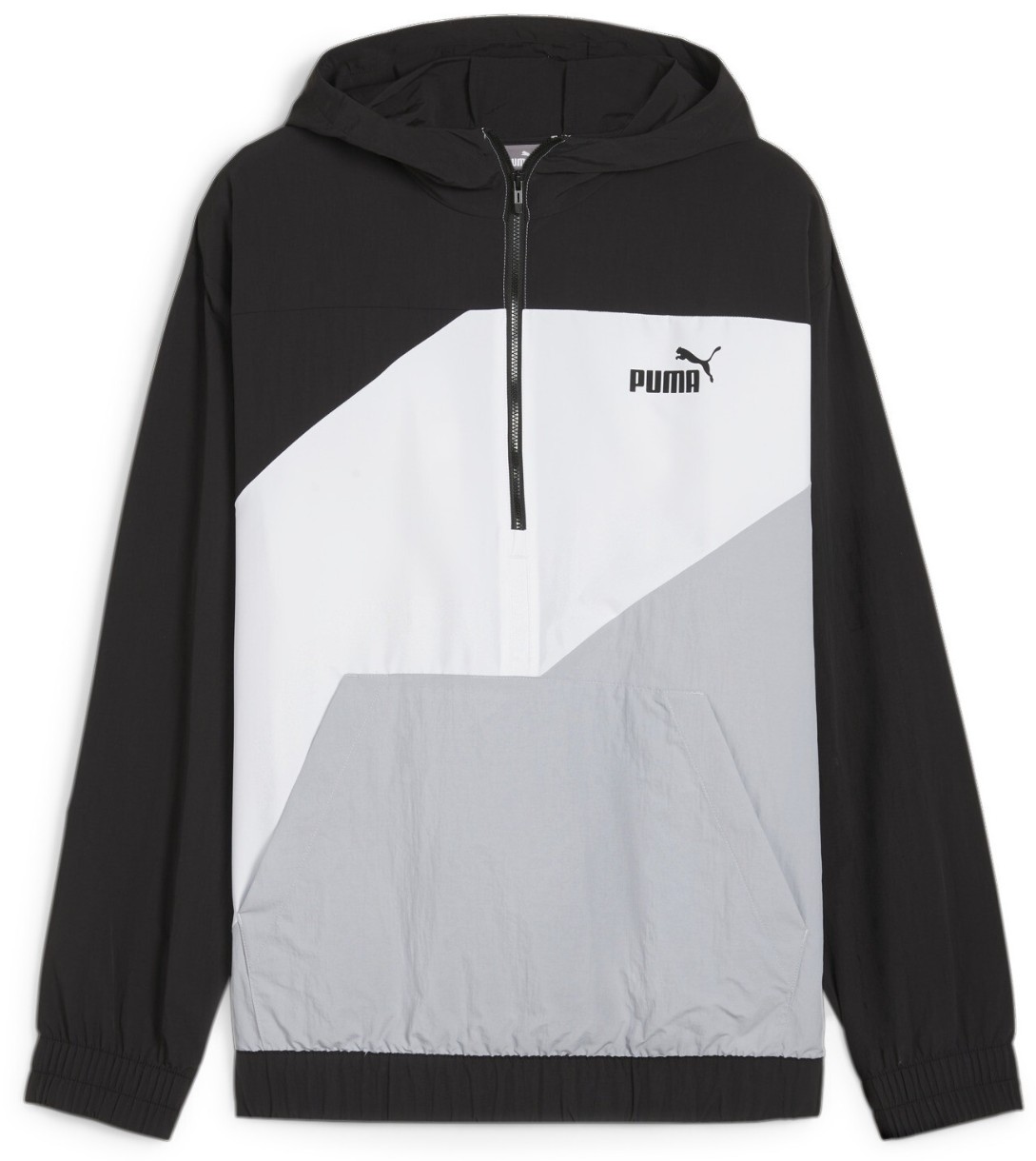 Puma Power Windbreaker ½ Zip имеет модный и привлекательный дизайн, обычный крой, практичный карман-кенгуру, полноразмерную застежку-молнию и несъемный капюшон для индивидуальной регулировки охвата и посадки.