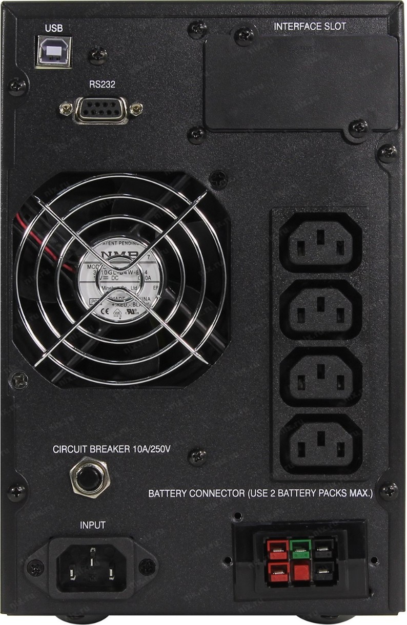 Высокий коэффициент мощности (PF=1) обеспечивает максимальную производительность. Полезными при эксплуатации будут работа в режиме высокой эффективности, горячая замена аккумуляторных батарейных блоков, возможность подключения внешних батарейных блоков для получения необходимого времени автономии.
