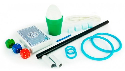 В наборе даны описания 100 различным фокусам (невероятный паззл, исчезающая монета, проникающая булавка и проч.). Следуйте схемам выполнения фокусов, и при помощи имеющихся в наборе компонентов, удивите друзей и знакомых необычными способностями и превращениями!