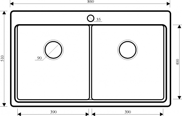 Размер мойки860x510 мм