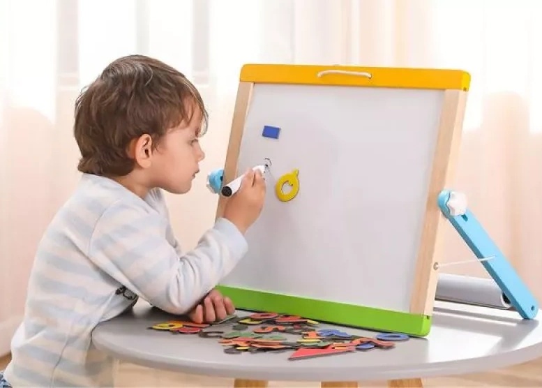 Благодаря раскладной подставке доску удобно размещать на столе.На детской доске можно рисовать, выкладывать картинки из магнитов, изучать алфавит, цифры, основы чтения и счета. Занятия с магнитной доской развивают зрительно-моторную координацию, образное и абстрактное мышление, воображение, художественные навыки.
