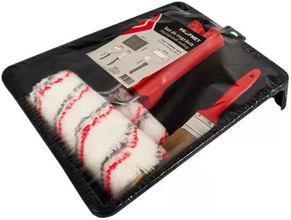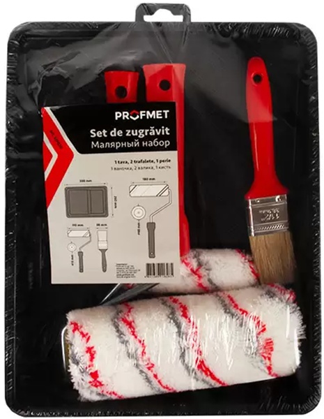 Малярный набор - включает в себя ванночку для краски, два валика и кисть. Этот комплект идеально подходит для выполнения различных покрасочных работ, обеспечивая удобство и высокое качество нанесения краски. Большой валик используется для обработки крупных поверхностей, маленький валик — для труднодоступных мест, а кисть позволяет аккуратно окрашивать углы и края. Все элементы набора изготовлены из качественных материалов, обеспечивая долговечность и комфорт в работе.