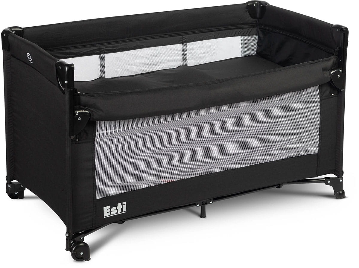 Кроватка Esti — это дорожная кроватка, разработанная для облегчения ухода за младенцами. Ее самым большим преимуществом является складная сторона, которая трансформирует кроватку в дополнительную кровать и обеспечивает более удобный доступ к ребенку. Практичный механизм складывания означает, что складывание или раскладывание занимает всего лишь мгновение. Кроватка также имеет колеса с блокировкой для легкой переноски. Боковая дверца, закрывающаяся на молнию, позволит детям постарше безопасно заходить в кроватку, которую можно использовать как манеж. Кроватка соответствует стандарту EN 716: 2017-07.