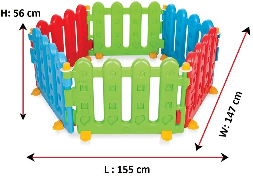 Ограждение поможет обеспечить безопасность ребенка и организовать место для игр. Манеж состоит из 6 секций разного цвета, что благоприятно влияет на развитие у ребенка цветового восприятия. Простота конструкции позволяет быстро и легко собирать ограждение и разбирать его. Купите несколько комплектов и соберите длинный заборчик на игровой площадке или широкий контур для большого сухого бассейна (заполняется пластиковыми шариками).