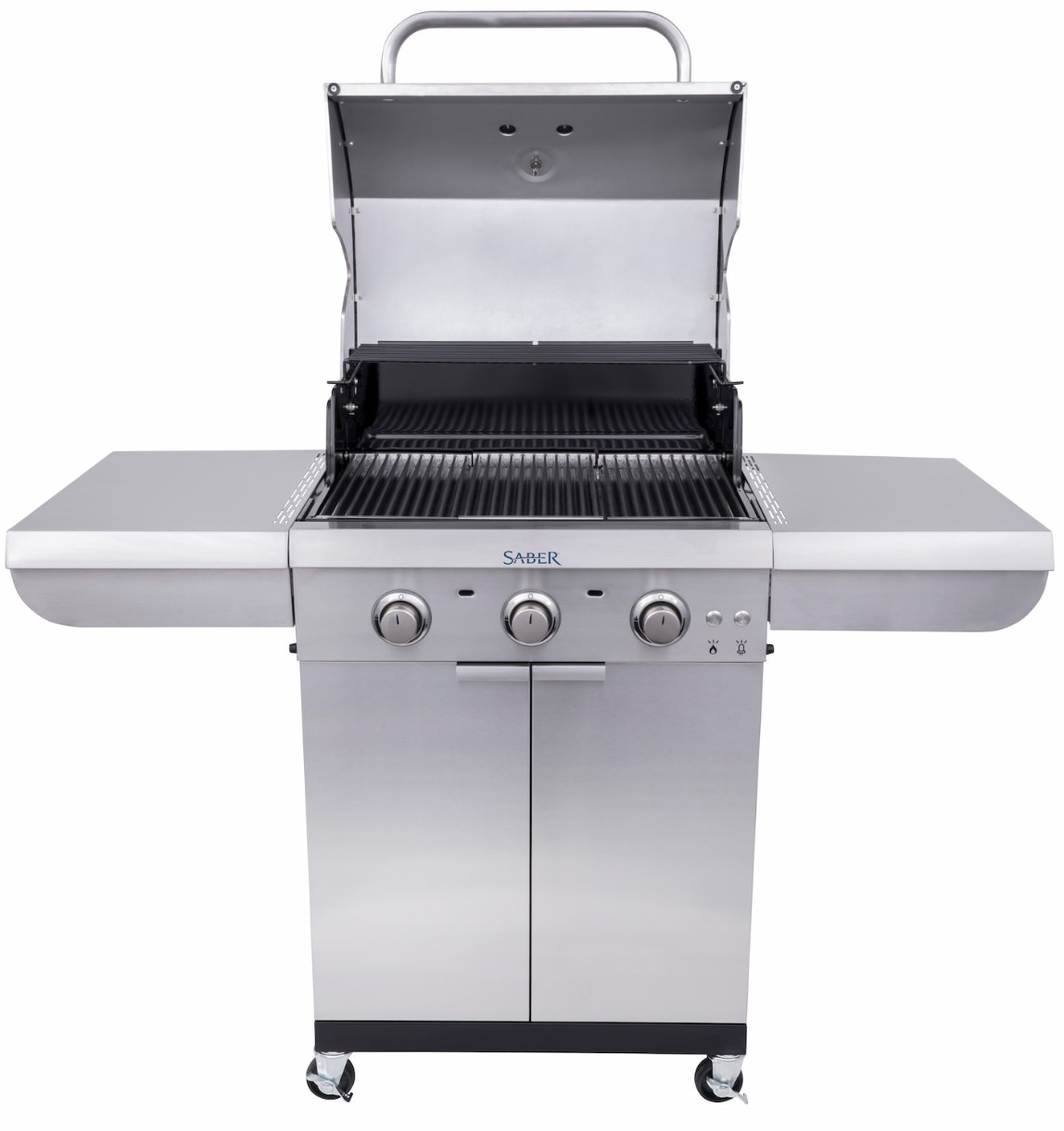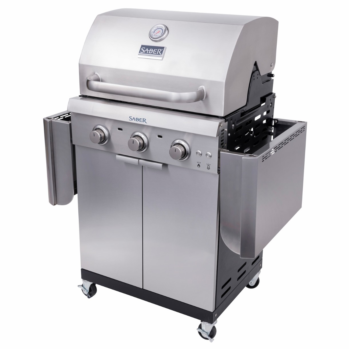 Газовый гриль SABER® Select 3-Burner дарит блюдам идеальный сочный вкус. Эксклюзивная система приготовления равномерно нагревает поверхность гриля и навсегда лишает вас вспышек огня. Этот глянцевый гриль имеет большую поверхность для приготовления пищи с решетками из нержавеющей стали, которые прекрасно себя зарекомендовали в ресторанном бизнесе, изготовленные по премиальной конструкции они подарят вам годы безотказной службы. На больших боковых полках достаточно места, чтобы разместить специи и кухонные принадлежности необходимые вам во время барбекю. Полочки быстро складываются, что облегчит вам хранения гриля. Select 3-Burner оборудован подсветкой синего цвета, что придает ему изысканного стиля, внутренний шкафчик имеет удобные полочки для хранения самых необходимых мелочей для барбекю.