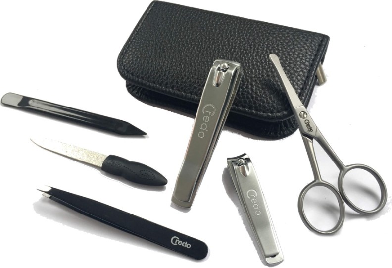 Пользоваться ножничками и пилочками удобно, приятно и безопасно. Набор включает 6 предметов в кожаном чехле: маникюрные ножнички, большие и маленькие кусачки для ногтей, пилочку для ногтей, пинцет для удаления волосков, маникюрный пушер.