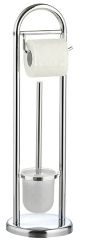 Гарнитур для туалета состоит из колбы с ершиком и держателя для бумаги. Держатель для туалетной бумаги оснащен крышкой. В нижней части стойки для туалета расположена пластиковая колба с туалетным ершом со стальной ручкой и жестким густым ворсом.
