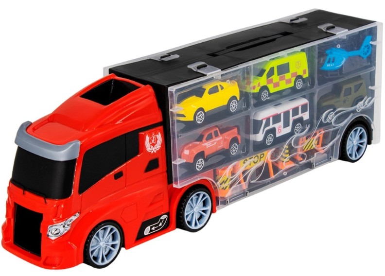 Основным элементом набора является грузовик-перевозчик, специально разработанный для перевозки игрушечных автомобилей.