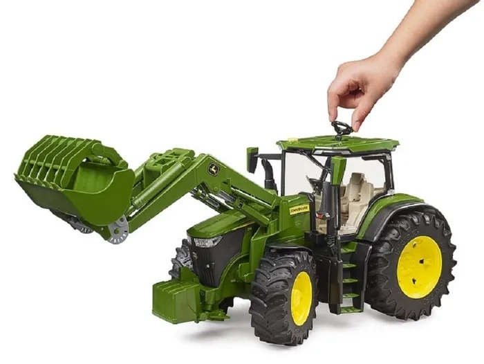 Современное сельское хозяйство уже немыслимо без современных тракторов. Поскольку работа фермеров не только сложна, но и полна проблем, им нужна правильная технология. Тракторы John Deere серии 7R сочетают в себе малый общий вес и высокую производительность. Этот маневренный трактор не только ускоряет транспортировку, но и ускоряет выполнение любых операций. Этот важный трактор является новым в компании BRUDER, где его можно найти в мире сельскохозяйственной тематики. Верный девизу Bruder “Как настоящий”, трактор оснащен множеством реалистичных деталей. Капот открывается и показывает впечатляющий двигатель. Двери могут открываться и предлагать опционально доступное пространство bworld figures в современном салоне. Типичной особенностью BRUDER является превосходная управляемость и комфорт при езде благодаря установленной качающейся оси, а также удлинителю рулевого управления, который можно вставить через сдвижную крышу. Регулируемая по высоте задняя муфта совместима со всеми прицепами серии Professional, которые также могут быть загружены фронтальным погрузчиком. На этот трактор могут быть установлены все прицепы из сельскохозяйственной линейки BRUDER.