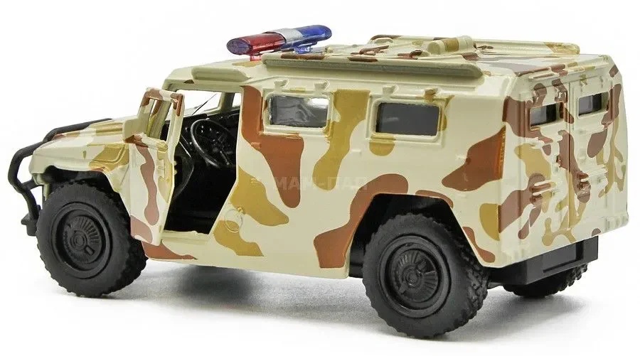 Металлическая машинка Play Smart 1:43 "Боевая бронированная машина» представляет собой уменьшенную копию настоящего военного бронированного внедорожника.