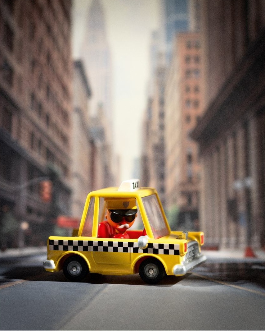Куда ты идешь? Джо уже перевез тысячи людей на своем красивом желтом автомобиле-такси! Он знает город как свои пять пальцев. Залезай!
