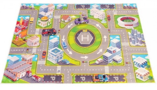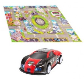 Красочный игровой коврик с машинкой и аксессуарами станет замечательным подарком для маленького водителя. Коврик представляет собой небольшой участок города с изображением улиц, домов и дороги для движения транспорта.