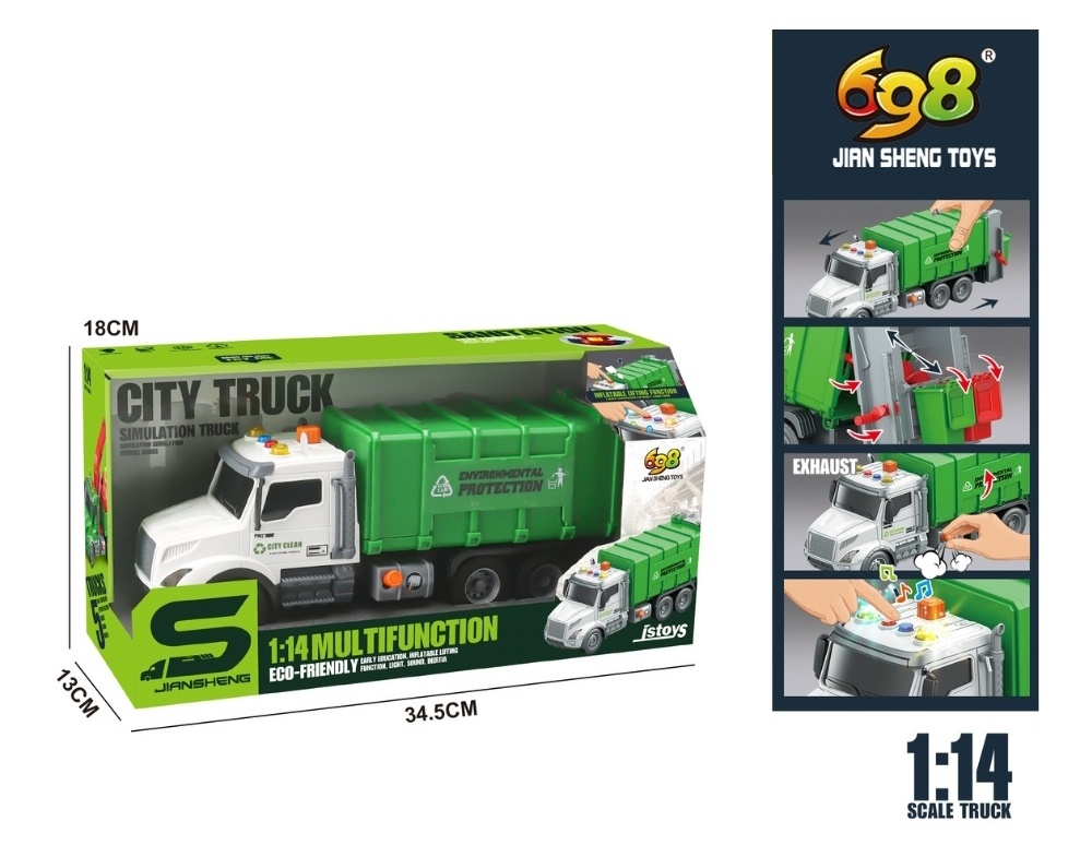 Санитарный грузовик со звуками и светом - интерактивная игрушка в масштабе 1:14, предназначенная для детей, увлекающихся специальным транспортом.