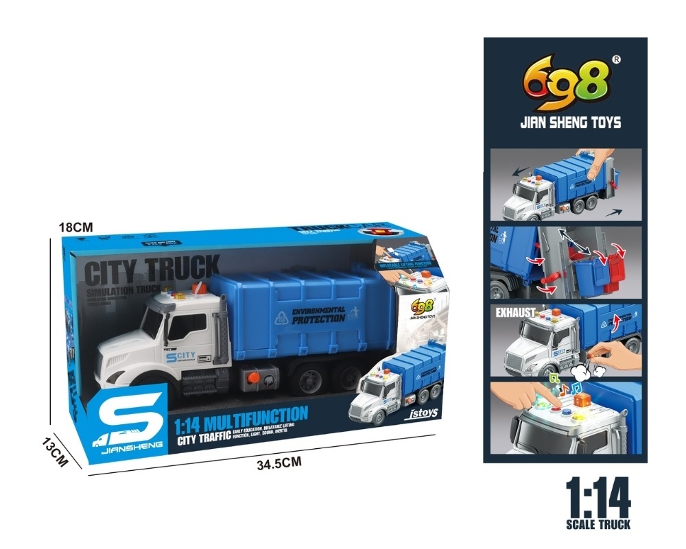 Санитарный грузовик со звуками и светом - интерактивная игрушка в масштабе 1:14, предназначенная для детей, увлекающихся специальным транспортом.