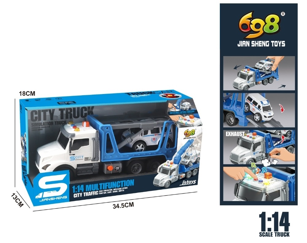 Синий эвакуатор со звуками и подсветкой - интерактивная игрушка в масштабе 1:14, предназначенная для детей, увлекающихся специальным транспортом.