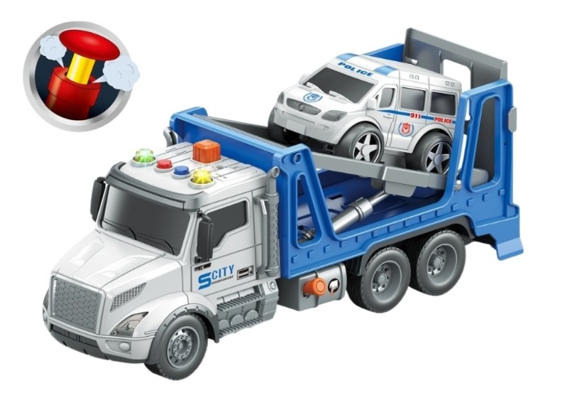 Грузовик издает звуки, характерные для настоящего специального автомобиля. Оснащенный фарами, которые включаются во время движения, грузовик добавляет привлекательный визуальный элемент. В игрушке предусмотрен фрикционный механизм, который позволяет ей двигаться вперед после небольшого толчка.