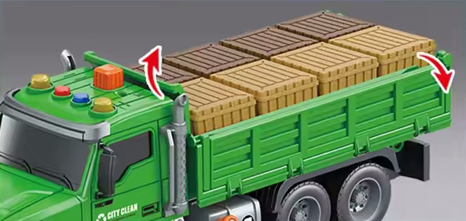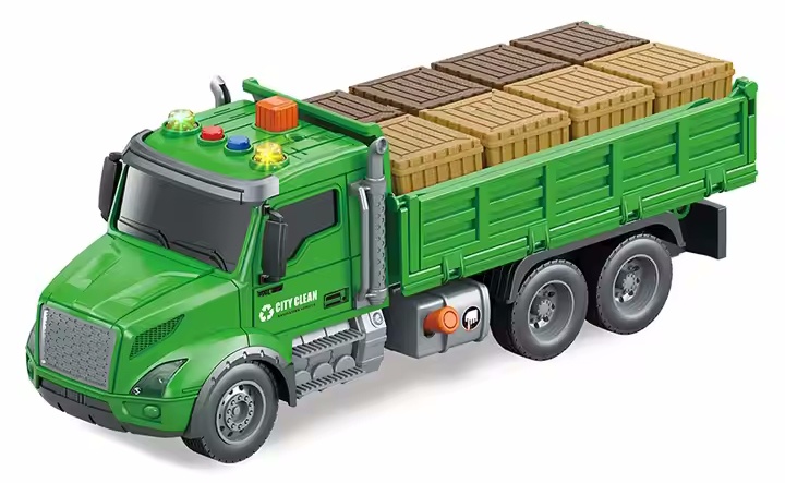 Зеленый грузовик с прицепом со звуками и светом - интерактивная игрушка в масштабе 1:14, предназначенная для детей, увлекающихся специальным транспортом.