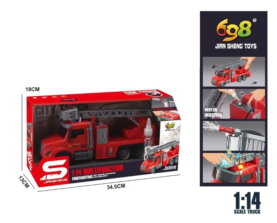 Пожарная машина с лестницей, со звуками и светом - интерактивная игрушка в масштабе 1:14, предназначенная для детей, увлекающихся специальным транспортом.
