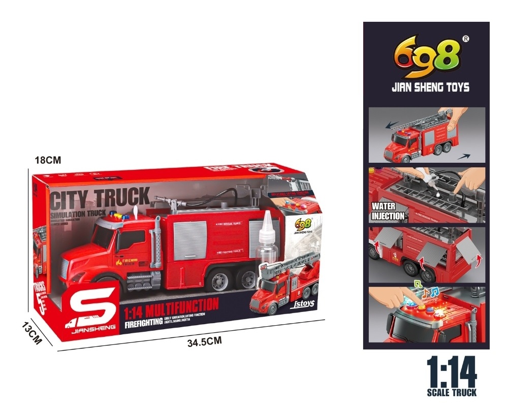 Пожарная машина с лестницей, со звуками и светом - интерактивная игрушка в масштабе 1:14, предназначенная для детей, увлекающихся специальным транспортом.