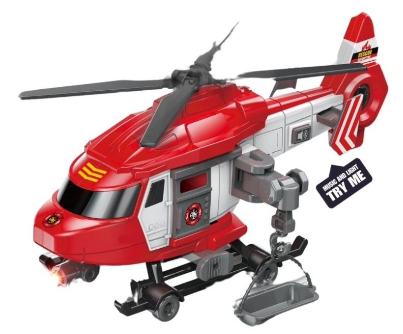 Эта игрушка выполнена в масштабе 1:16 и движется при помощи фрикционного механизма. Вам достаточно лишь слегка подтолкнуть его вперед, и Вертолет продолжит движение без необходимости использовать для движения батарейки. Вертолет оснащен световыми и звуковыми эффектами, характерными для вертолета в полете.