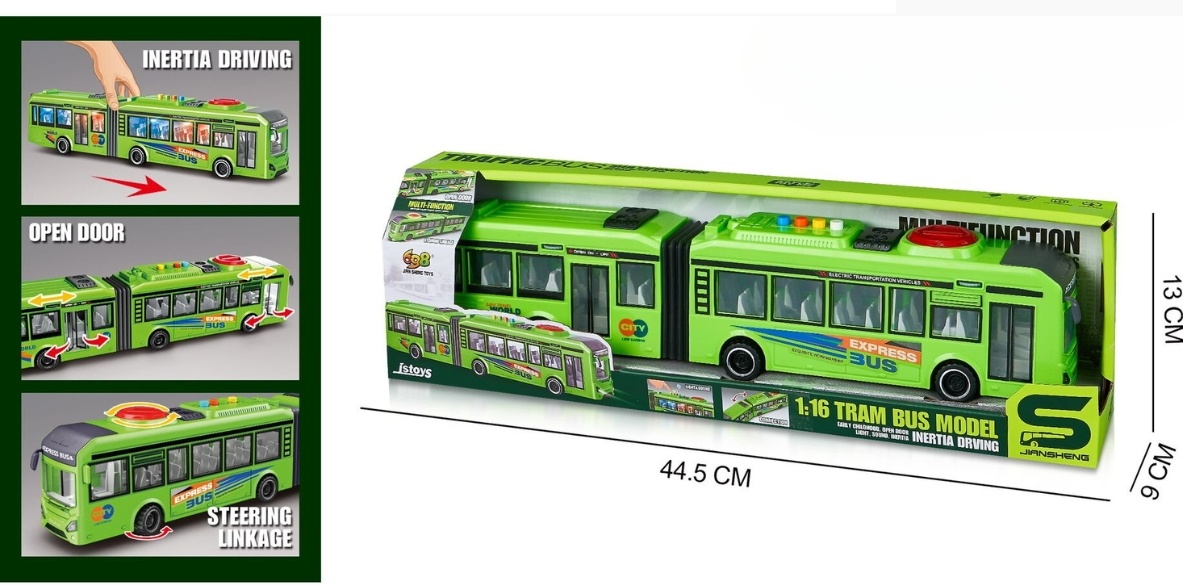 Городской автобус в масштабе 1:16 представляет собой миниатюрную версию настоящего городского автобуса. Он был спроектирован с вниманием к каждой детали, двери открываются, реалистичный звук и резиновые шины делают удовольствие максимально достоверным.