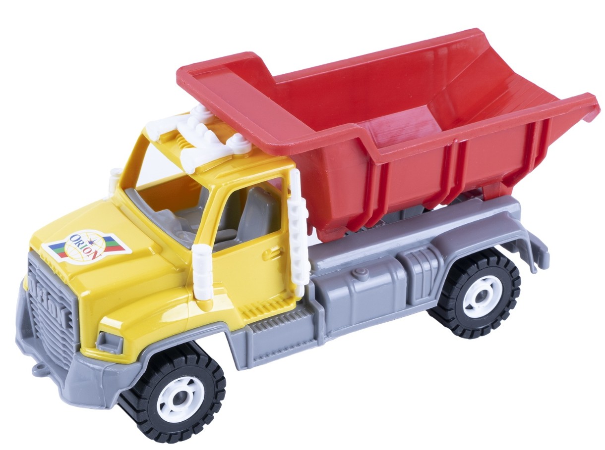 Игрушка транспортная, Камакс самосвал двухосный, длина – 255 мм, ширина 90 мм, высота – 110 мм, масса – 0,17 кг, потребительская упаковка – сетка полимерная. Данная модель изготавливается на основе двухосного шасси, в котором есть двухместное сиденье, панель управления.