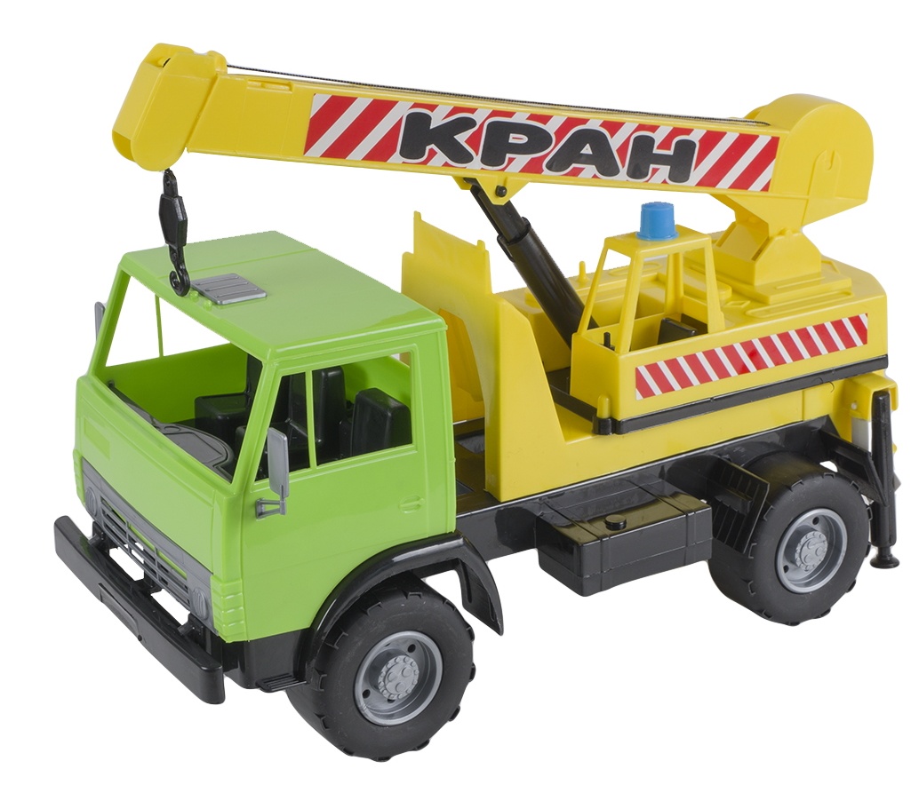Игрушка транспортная, строительная техника –автокран на двухосном автомобильном шасси, длина – 385 мм, ширина 195 мм, высота – 245 мм, масса – 0,650 кг, потребительская упаковка – сетка полимерная.