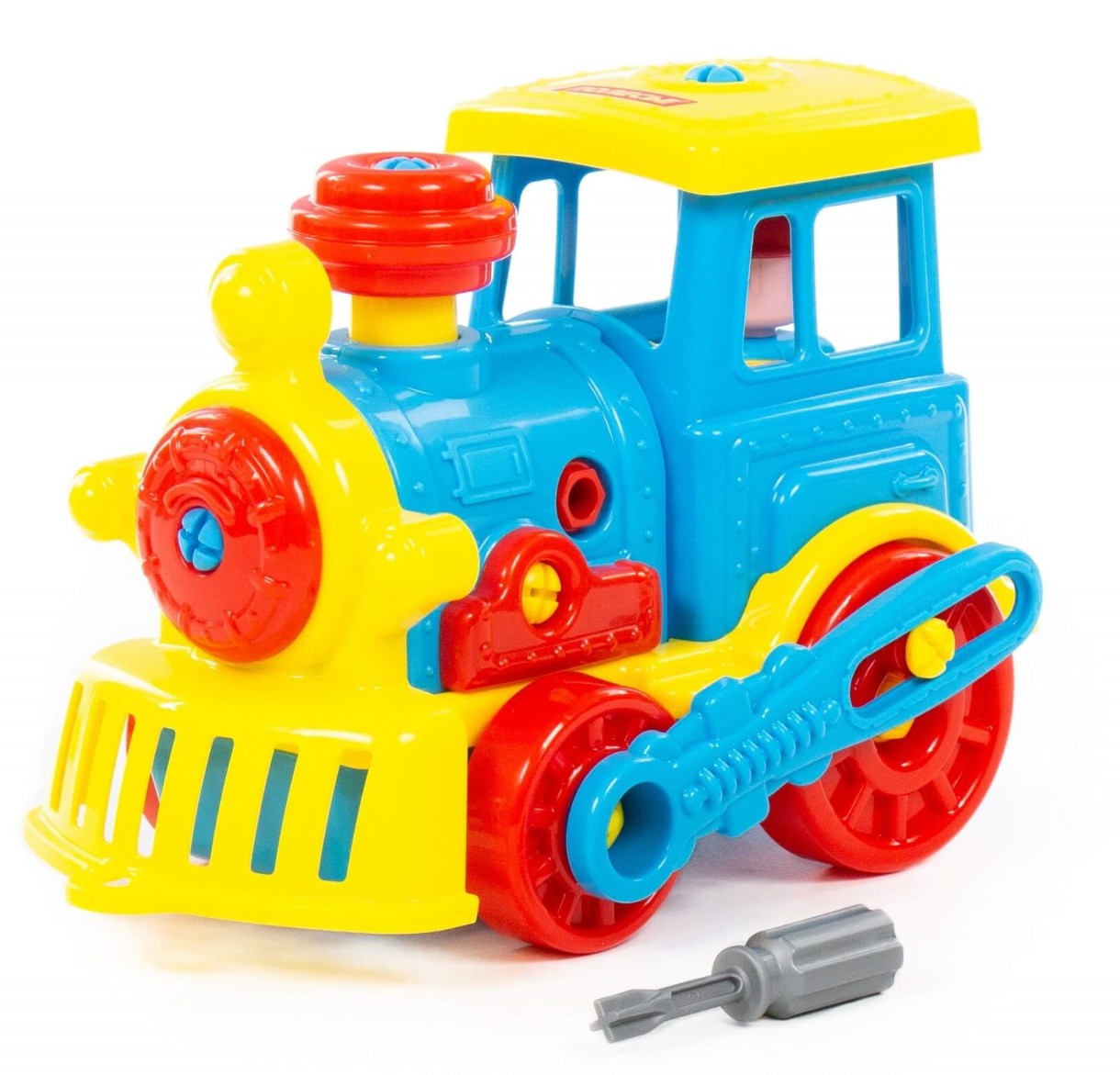 Для самых любопытных малышей, которые хотят поближе познакомиться с разными видами транспорта, фабрика «Полесье» представляет конструктор-транспорт "Паровоз". Игрушка выполнена в ярких цветах, из качественного материала, имеет округлую форму. Все элементы паровоза представлены в виде конструктора, который соединяется с помощью пластмассовых шурупов. В наборе также идёт крестообразная отвёртка, которая разнообразит игру, сделает её еще интереснее, позволяя без труда разбирать и собирать паровоз. Игра с таким конструктором знакомит ребёнка с первыми навыками моделирования и конструирования, а также развивает фантазию. Упакована игрушка в яркую коробку, которая может выступать в качестве подарочной.