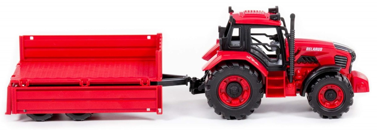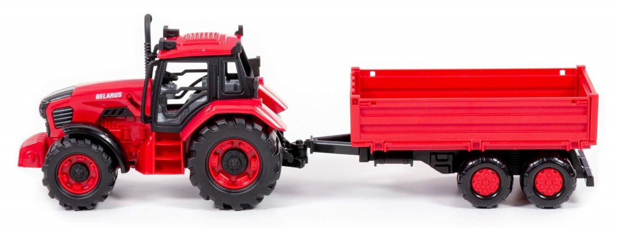 Трактор Belarus – игрушка, изготовленная по лицензии ОАО «Минский тракторный завод». Выпуск трактора приурочен к 75-летнему юбилею завода. Игрушка максимально детализирована и выполнена в узнаваемом цвете сельскохозяйственной техники. Капот трактора может быть зафиксирован в открытом положении для «ремонта» во время игры. Трактор оснащен инерционным механизмом, который повышает проходимость на разных поверхностях. Наличие прицепа (можно поднимать, борта открываются) позволит разнообразить сценарии детских игр. Взаимодействовать с игрушкой увлекательно как дома, так и на свежем воздухе.