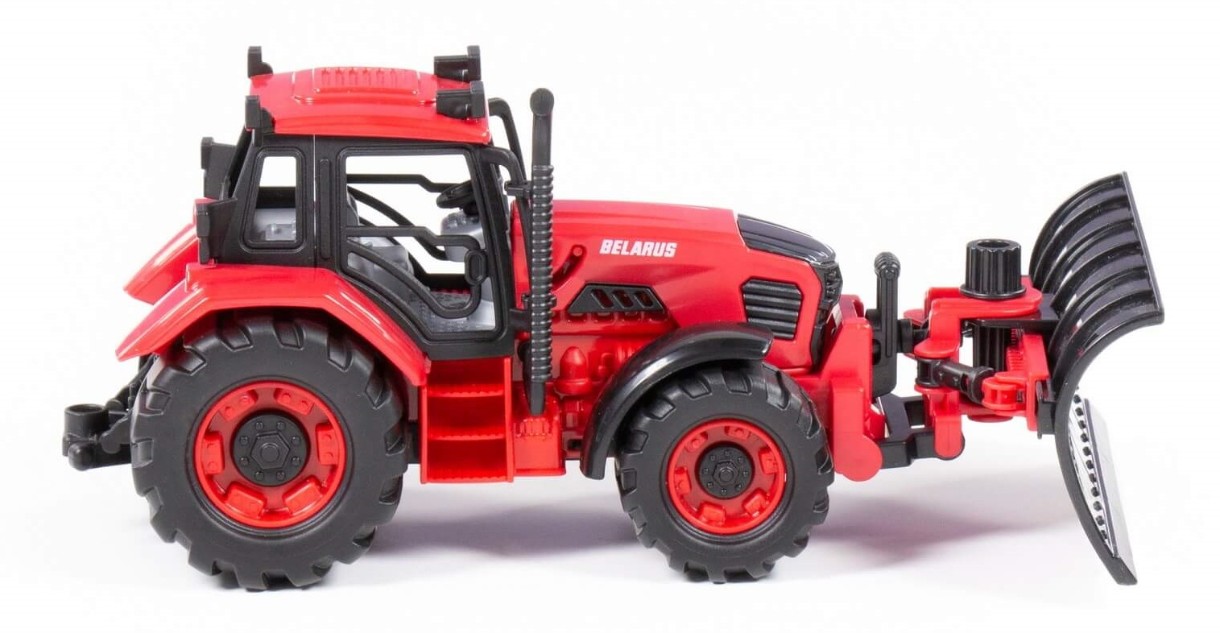 Трактор Belarus – игрушка, изготовленная по лицензии ОАО «Минский тракторный завод». Выпуск трактора приурочен к 75-летнему юбилею завода. Игрушка максимально детализирована и выполнена в узнаваемом цвете сельскохозяйственной техники. Капот трактора может быть зафиксирован в открытом положении для «ремонта» во время игры. Трактор оснащен инерционным механизмом, который повышает проходимость на разных поверхностях. Данная модель оснащена отвалом для уборки дорог, что позволит разнообразить сценарии детских игр. Взаимодействовать с игрушкой увлекательно как дома, так и на свежем воздухе. Продается маленький аналог большой спецтехники в красочной коробке.